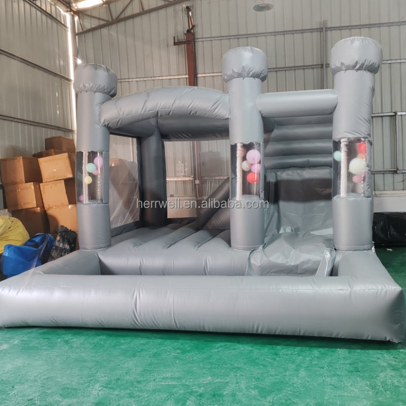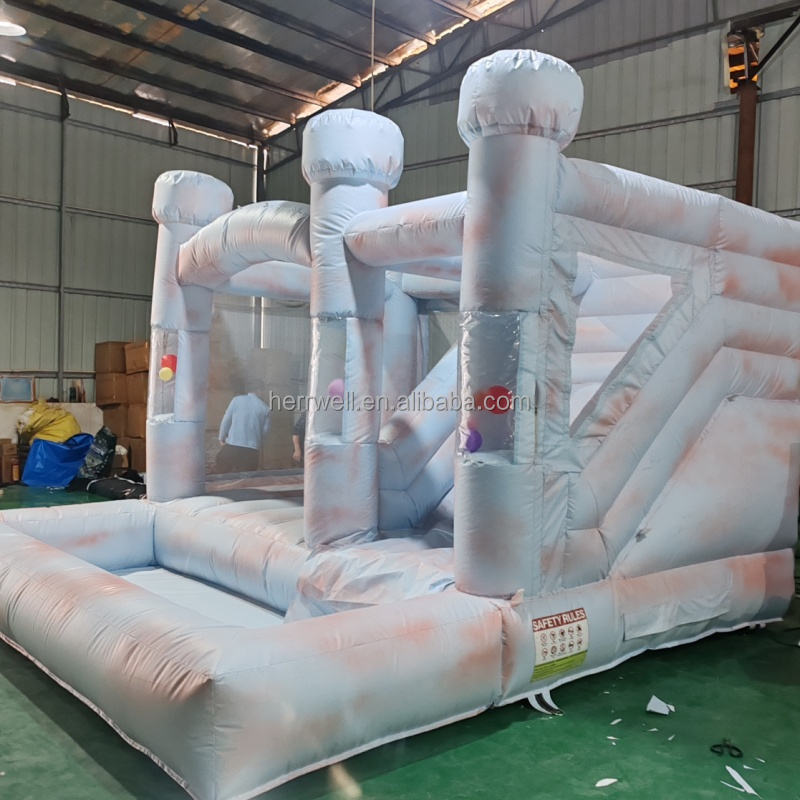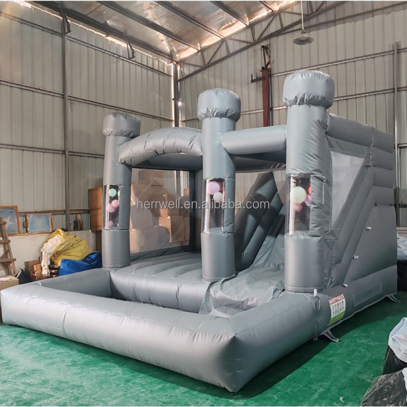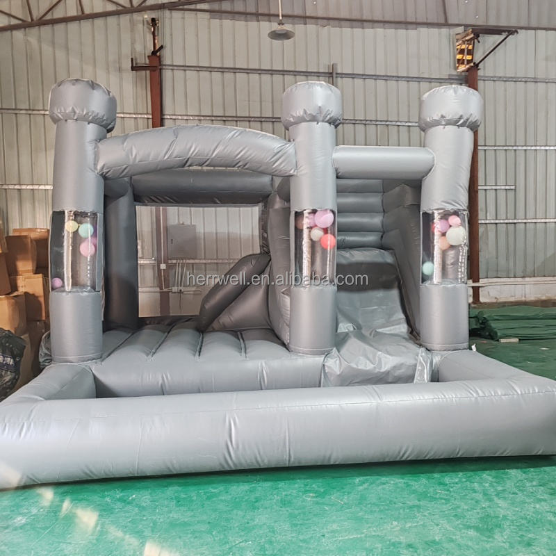 บ้านเป่าลมรูปปราสาทเด้งลูกโป่งเด้งดีไซน์ป๊อปบ้านเป่าลมพร้อมสไลเดอร์และบอลสระว่ายน้ำสำหรับเช่างานปาร์ตี้