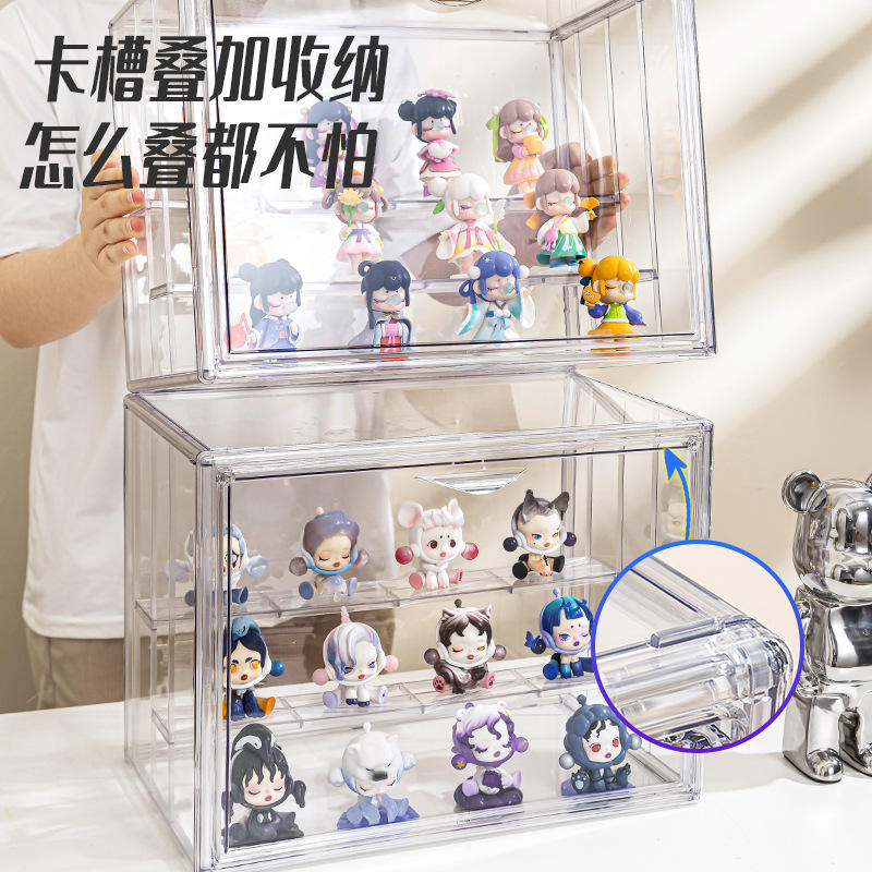 กล่องโชว์ฟิกเกอร์ Pop Mart ขนาด 36x22x26.5 ซม. กล่องเก็บของแบบใส ซ้อนกันได้ สำหรับโมเดลของเล่นและกล่องสุ่ม