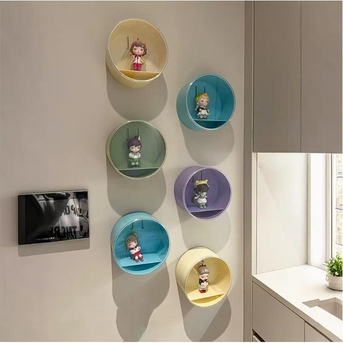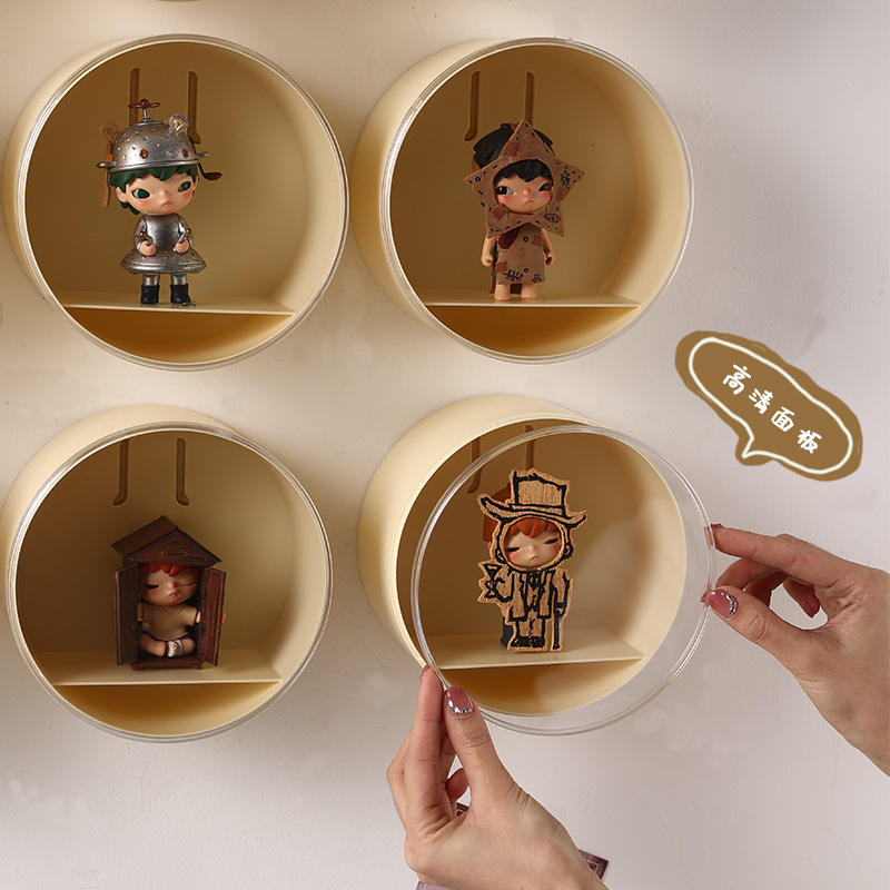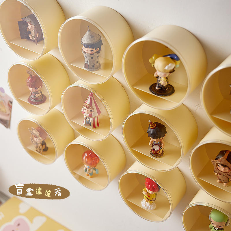ตู้โชว์ฟิกเกอร์ป๊อปมาร์ตแบบติดผนัง ป้องกันฝุ่น กล่องเก็บของขนาด 1 ลิตร พร้อมฝาปิด ดีไซน์สีพื้น สำหรับสะสมฟิกเกอร์ของเล่น