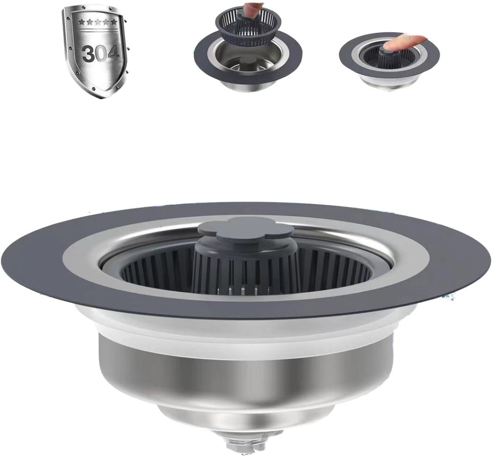 Pop-Up Anti-Clogging Stopper 3-in-1 Stainless Steel Kitchen Sink Drain Strainer