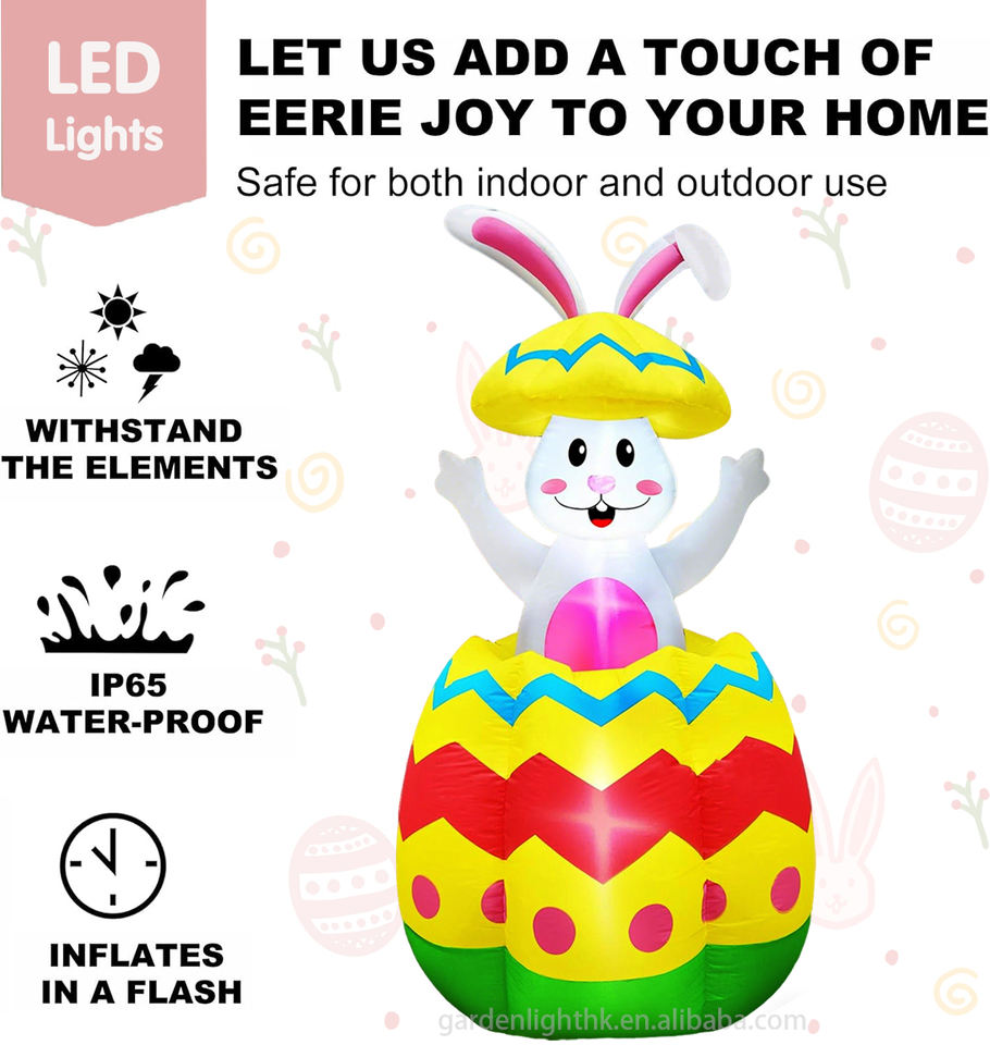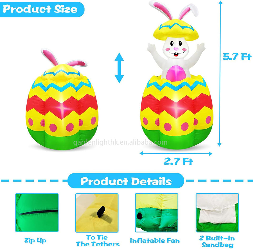 ชื่อผลิตภัณฑ์:กระต่ายเป่าลมอีสเตอร์สูง 5.7 ฟุต หลุดออกมาจากไข่อีสเตอร์สีสันสดใส