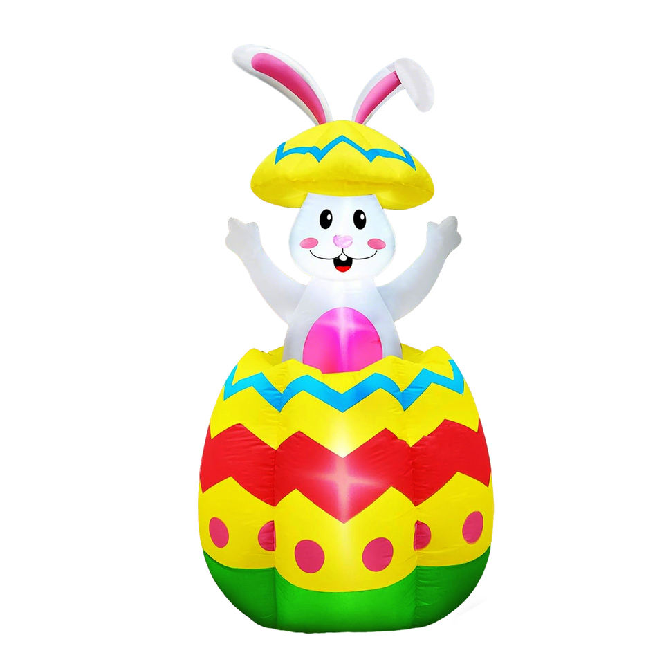 กระต่ายเป่าลมอีสเตอร์สูง 5.7 ฟุต หลุดออกมาจากไข่อีสเตอร์สีสันสดใส