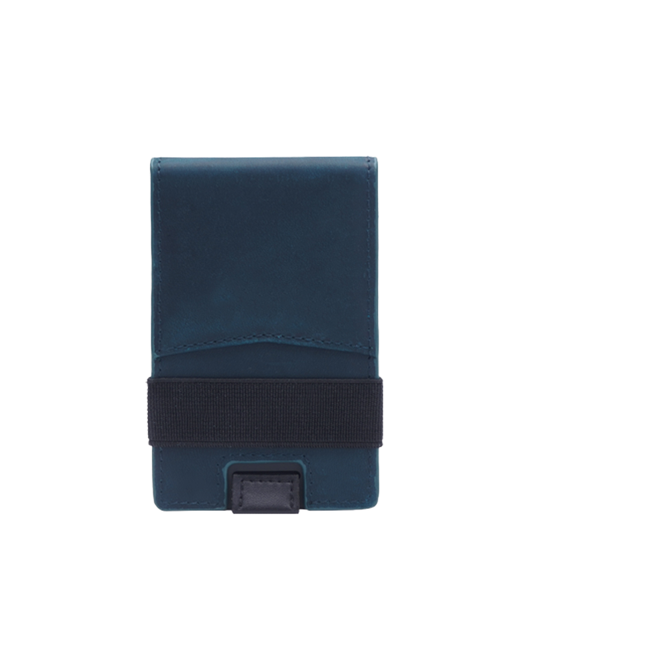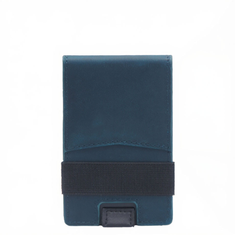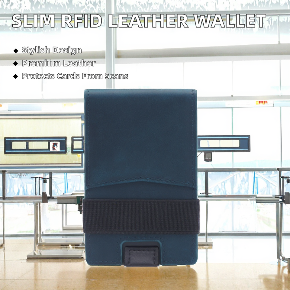 กระเป๋าสตางค์ผู้ชายแบบพับได้ ป้องกัน RFID หนังแท้ ดีไซน์มินิมอล บางเฉียบ พร้อมที่ใส่บัตรโลหะ