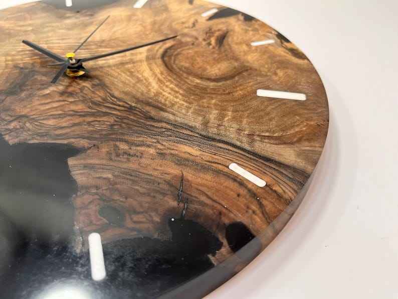 Pophorizon นาฬิกาไม้เรซินทำมือหรูหราขนาดและสีที่กำหนดเองโต๊ะไม้มะกอกและนาฬิกาแขวนผนังที่มีลวดลายสไตล์นางฟ้า