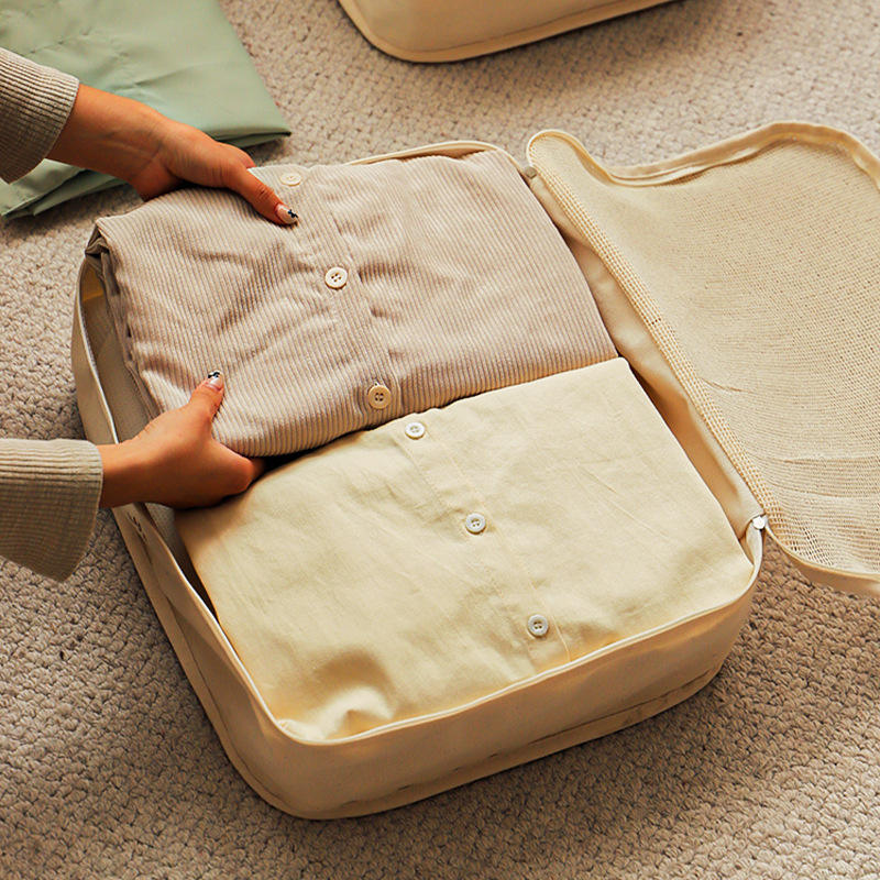 กระเป๋าจัดระเบียบเสื้อผ้า Poppy ทรงสี่เหลี่ยมผืนผ้า ผ้าฝ้าย 100% สำหรับจัดเก็บสัมภาระเดินทาง พร้อมช่องตาข่ายสำหรับใส่ในกระเป๋าเดินทาง