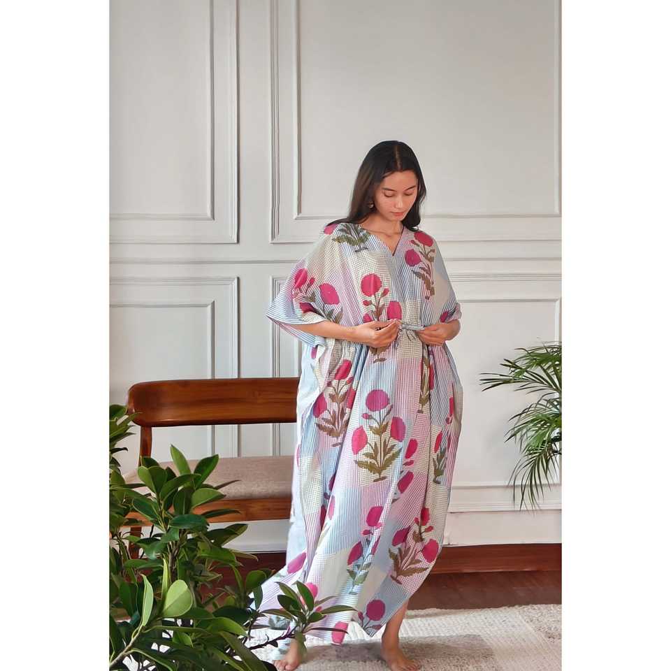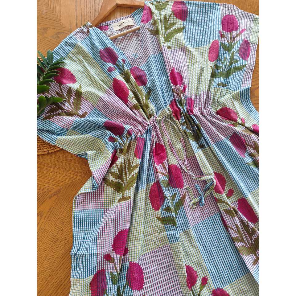ชุดคาฟตันลายตารางหลากสี Poppy ฟรีไซส์ ความยาว 52 นิ้ว เหมาะสำหรับใส่ไปเที่ยวชายหาด งานปาร์ตี้ ออกแบบลำลองตามสั่ง เอวต่ำ