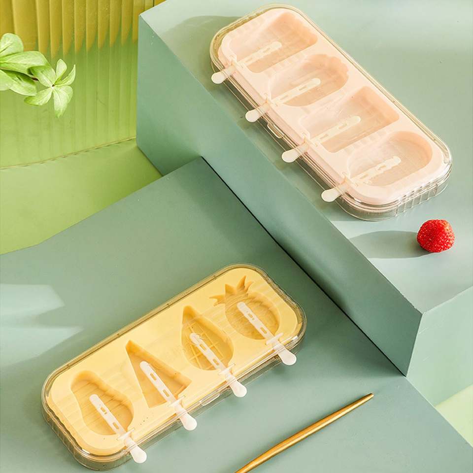 แม่พิมพ์ซิลิโคนสำหรับทำไอศกรีมแท่งพร้อมฝาปิด ใช้ซ้ำได้ แม่พิมพ์ขนมหวานแช่แข็ง DIY ไอศกรีมแท่ง 3 มิติ แม่พิมพ์ช็อกโกแลตพร้อมไม้พลาสติก