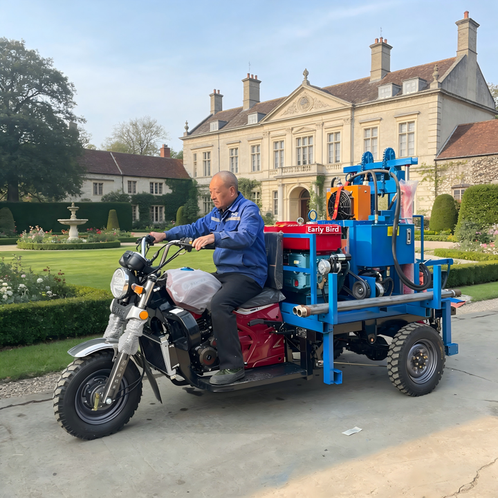 เครื่องเจาะน้ำแบบติดตั้งบนรถยนต์ขนาดเล็ก 150 ม. 200 ม. ยอดนิยม เครื่องเจาะแบบสามล้อพกพาสำหรับขายในแอฟริกาใต้