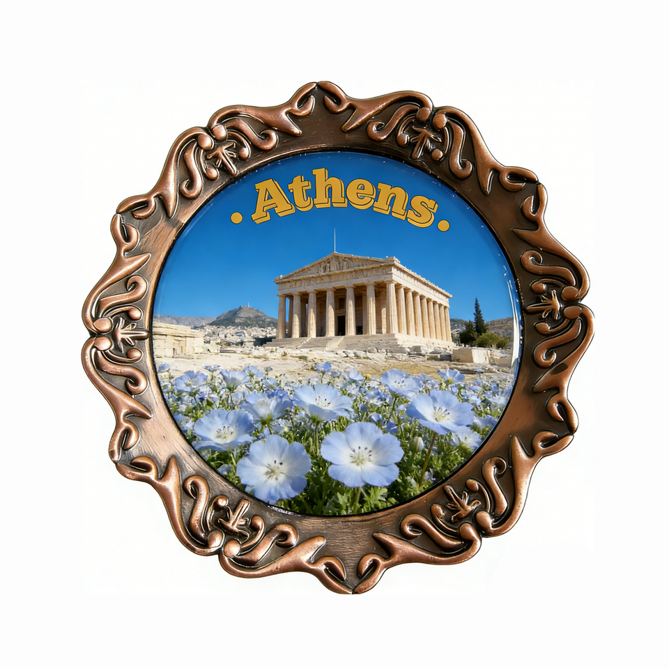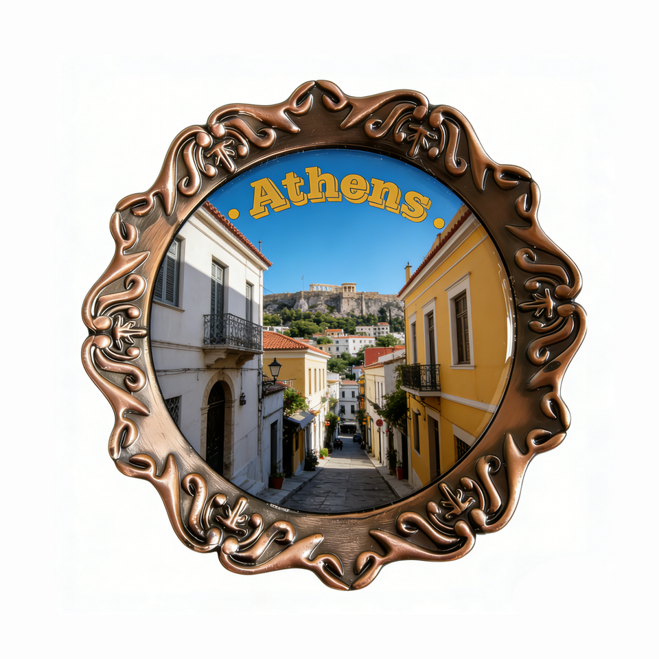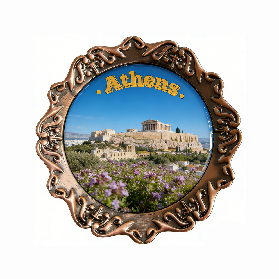 แม่เหล็กติดตู้เย็นโลหะพิมพ์ลาย UV ของที่ระลึกกรีซเอเธนส์ยอดนิยม ปรับแต่งได้