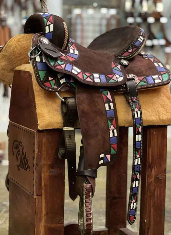 อานม้าแข่งม้าหนังแท้แบบพกพาดีไซน์แอซเท็กแบบอังกฤษทนทานแข่งแบบตะวันตก