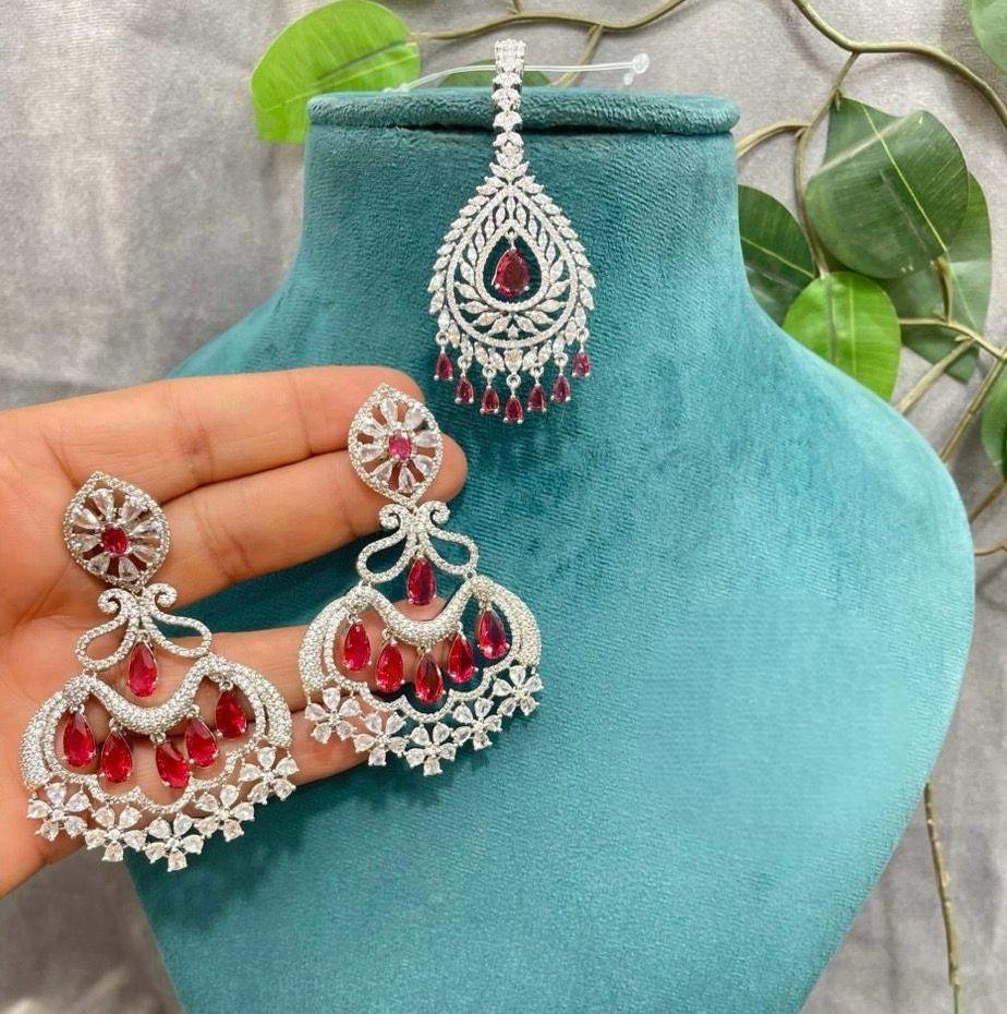 ต่างหูและติ๊กกะประดับเพชร CZ คุณภาพดี ดีไซน์ทันสมัย ชุบเงิน สวยหรู สำหรับผู้หญิงและเด็กผู้หญิง เหมาะสำหรับงานแต่งงาน