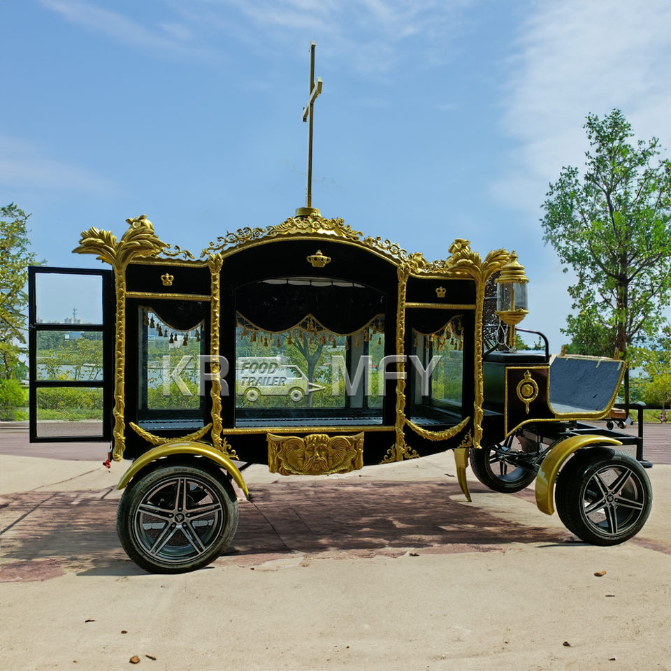 รถพ่วงโลงศพไฟฟ้า 4 ล้อ สีดำ ยอดนิยม ใช้ได้สองแบบ ทั้งรถบรรทุกและรถลากโลงศพ สำหรับการขนส่งพิเศษ