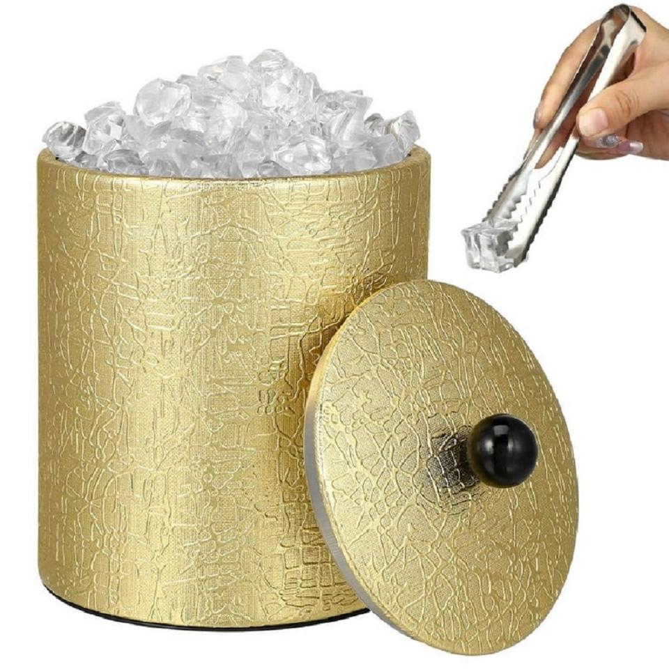 ถังน้ำแข็งทองเหลืองโบราณเคลือบทองคำ พร้อมหูจับ สำหรับแชมเปญ ไวน์ และเครื่องดื่มอื่นๆ