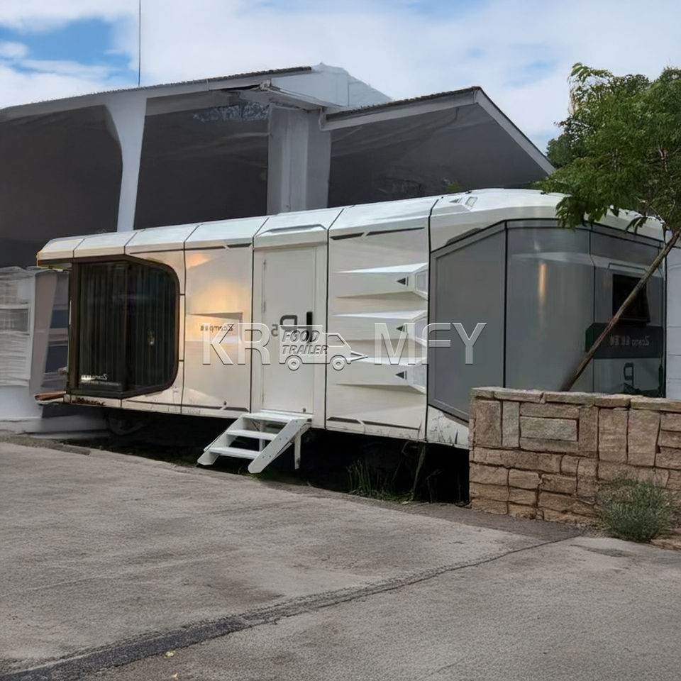 บ้านแคปซูลเคลื่อนที่ยอดนิยม Futurista โครงสร้างเหล็กสำเร็จรูปพร้อมล้อ พร้อมห้องนอน ห้องทำงาน โฮมออฟฟิศ โฮมบาร์ และห้องรับประทานอาหาร