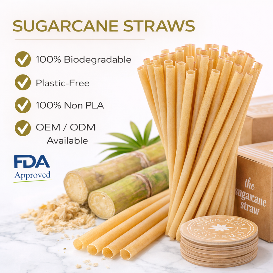 หลอดดูดทำจากอ้อยแบบใช้แล้วทิ้งสำหรับงานปาร์ตี้และเครื่องดื่ม