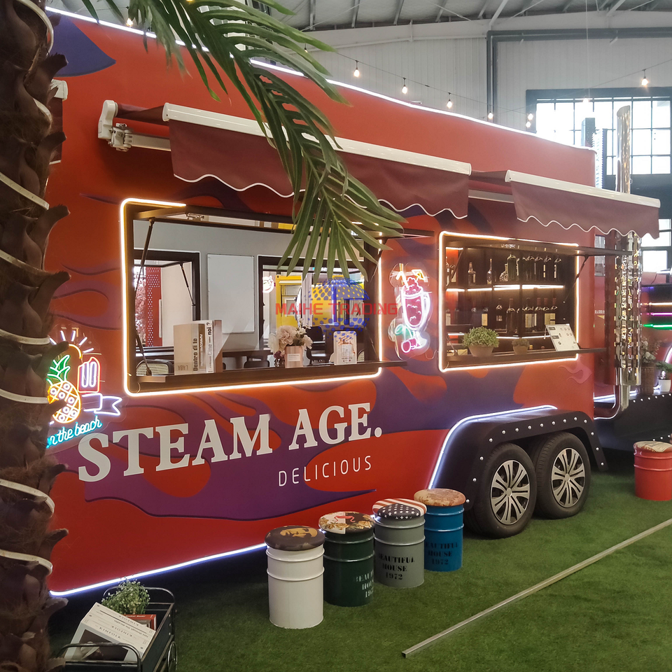 รถขายอาหารเคลื่อนที่แบบกำหนดเองได้ตามต้องการ ยอดนิยม สำหรับขายกาแฟ เบอร์เกอร์ ขนม ชิปส์ ไอศกรีม โครงสร้างสแตนเลส