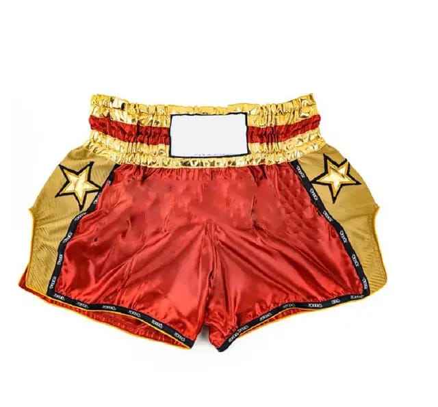 กางเกงขาสั้นผ้าซาตินสำหรับต่อยมวยไทยทำจากผ้าโพลีเอสเตอร์ออกแบบได้ตามต้องการน้ำหนักเบาระบายอากาศได้ดี