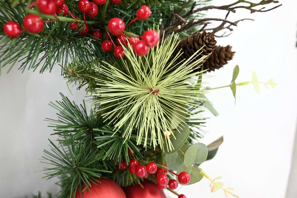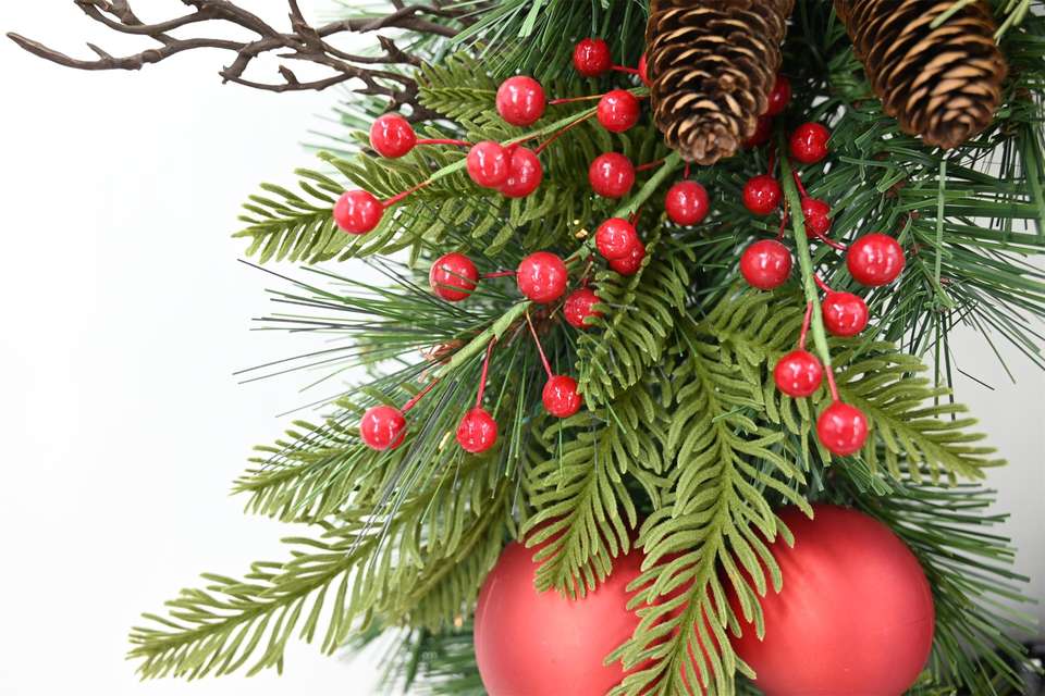 Popular Customized Door Hanging Eco-Friendly Pvc Christmas Red Berry Pine Cone Round Wreath