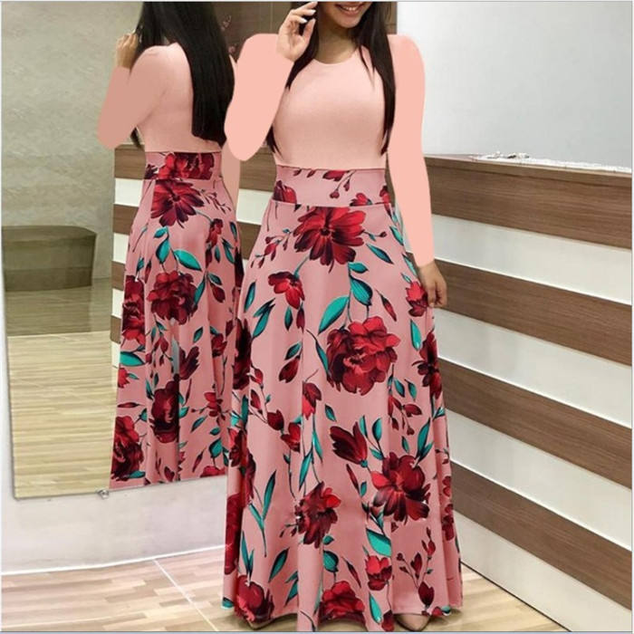 Popular Design 2022 New Arrivals Printed Velvet Long Sleeve Casual Maxi Elegant Women Plus Size Evening Dresses Natural Waist