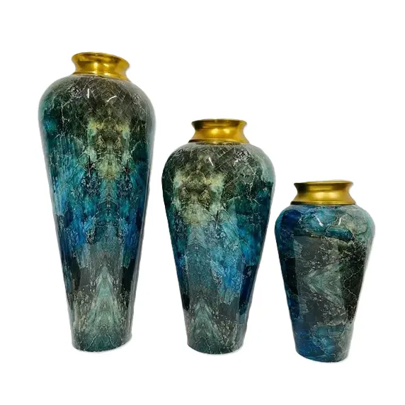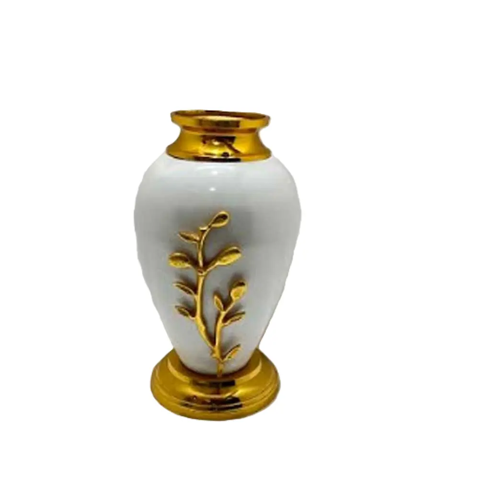 แจกันดอกไม้ทองเหลืองพิมพ์ลายเคลือบสีทองหรูหรา