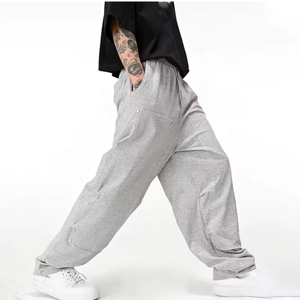 กางเกงวอร์มทรงตรงผ้าแคนวาสเอวกลาง ดีไซน์ยอดนิยม คุณภาพสูง ขายดี