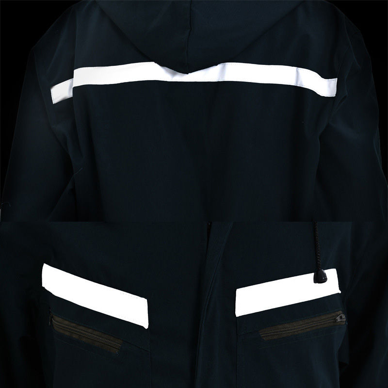 จั๊มสูททำงานมีฮู้ดสำหรับผู้ชายพร้อมแผ่นสะท้อนแสงชุดใส่ทำงานออกแบบได้ตามต้องการ