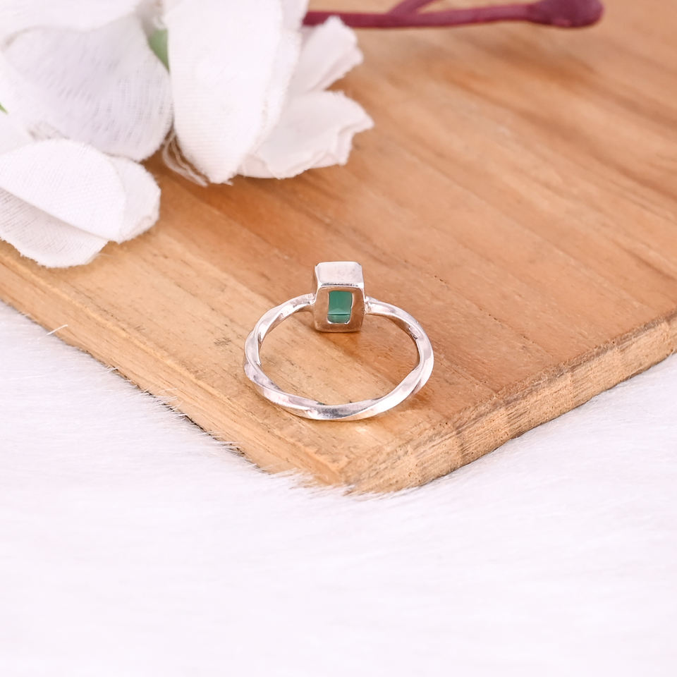 แหวนเงินแท้ 925 ชุบเงิน ดีไซน์ยอดนิยม รูปทรงสี่เหลี่ยมผืนผ้า ประดับพลอยออนิกซ์สีเขียว งานแฮนด์เมด แหวนดีไซเนอร์ แหวนซ้อน