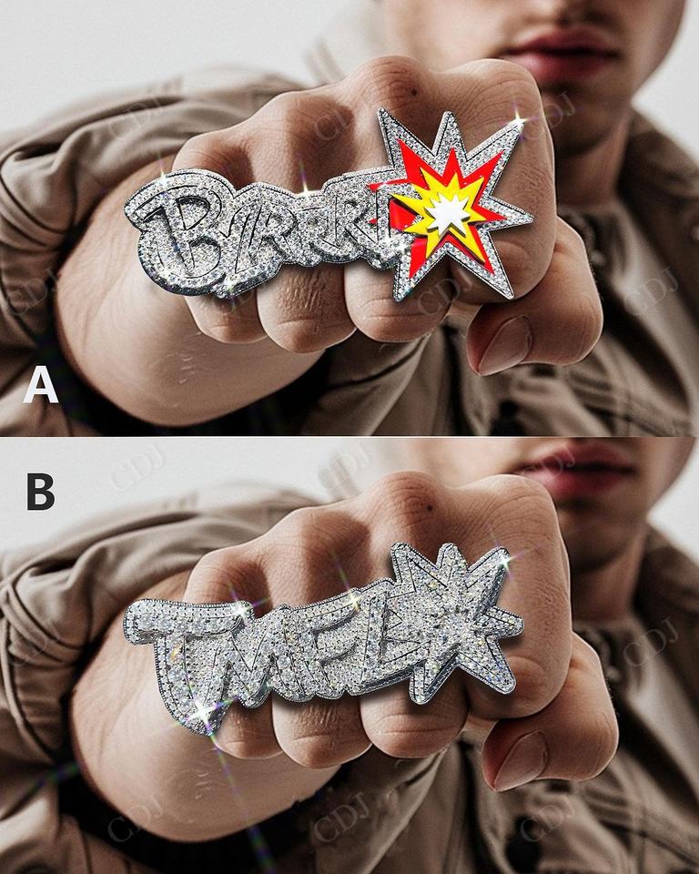 แหวนฮิปฮอปสำหรับผู้ชายและผู้หญิงเพชรโมอิสซานไนต์ทรงกลมดีไซน์สวยงามตัดได้ตามต้องการ