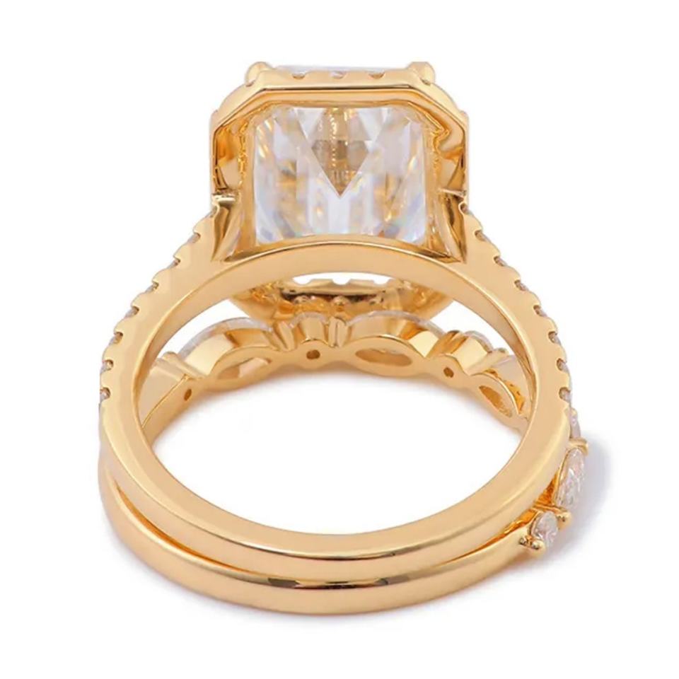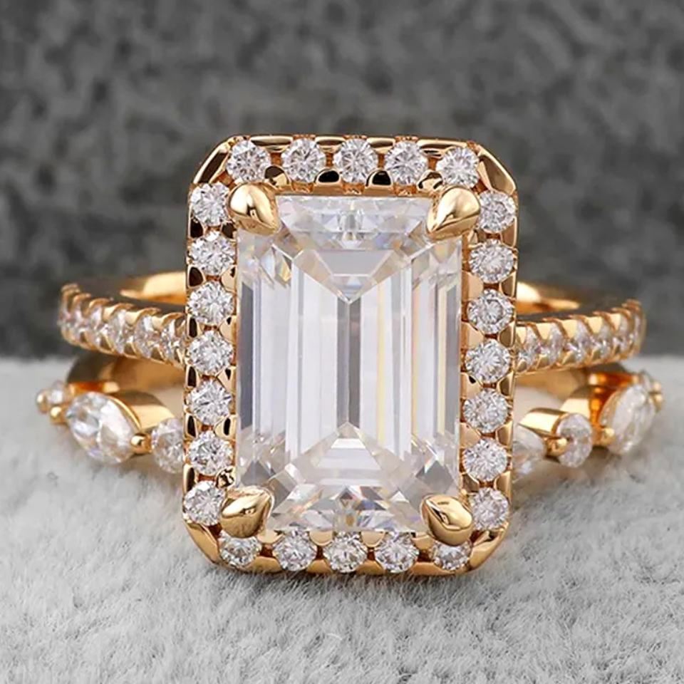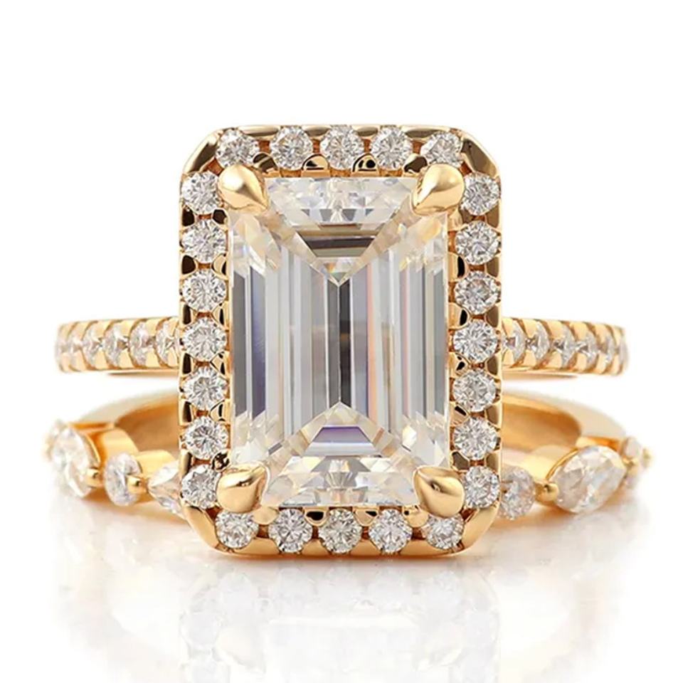 แหวนคู่ยอดนิยมทรงเหลี่ยมมรกต ทอง 14k สีเหลือง ประดับเพชรโมอิสซาไนต์ ทองคำแท่ง 3 กะรัต สำหรับชุดแหวนแต่งงาน
