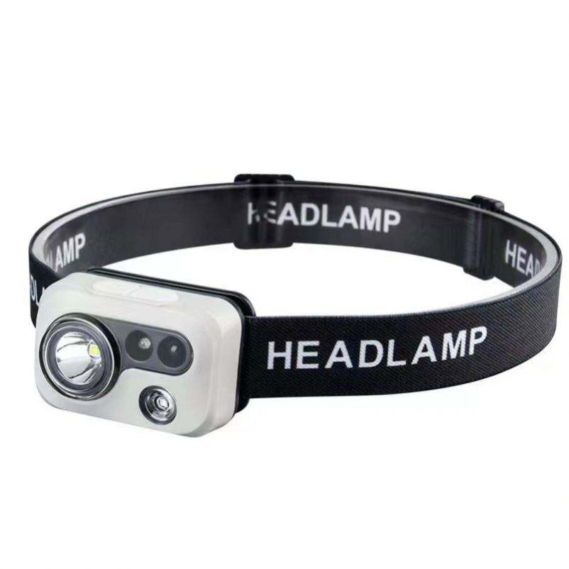 ไฟฉาย LED คาดศีรษะสำหรับตกปลาพร้อมไฟ LED แบบชาร์จไฟได้, ไฟฉายตรวจจับการเคลื่อนไหวแบบคู่พกพากลางแจ้งกันน้ำ ABS
