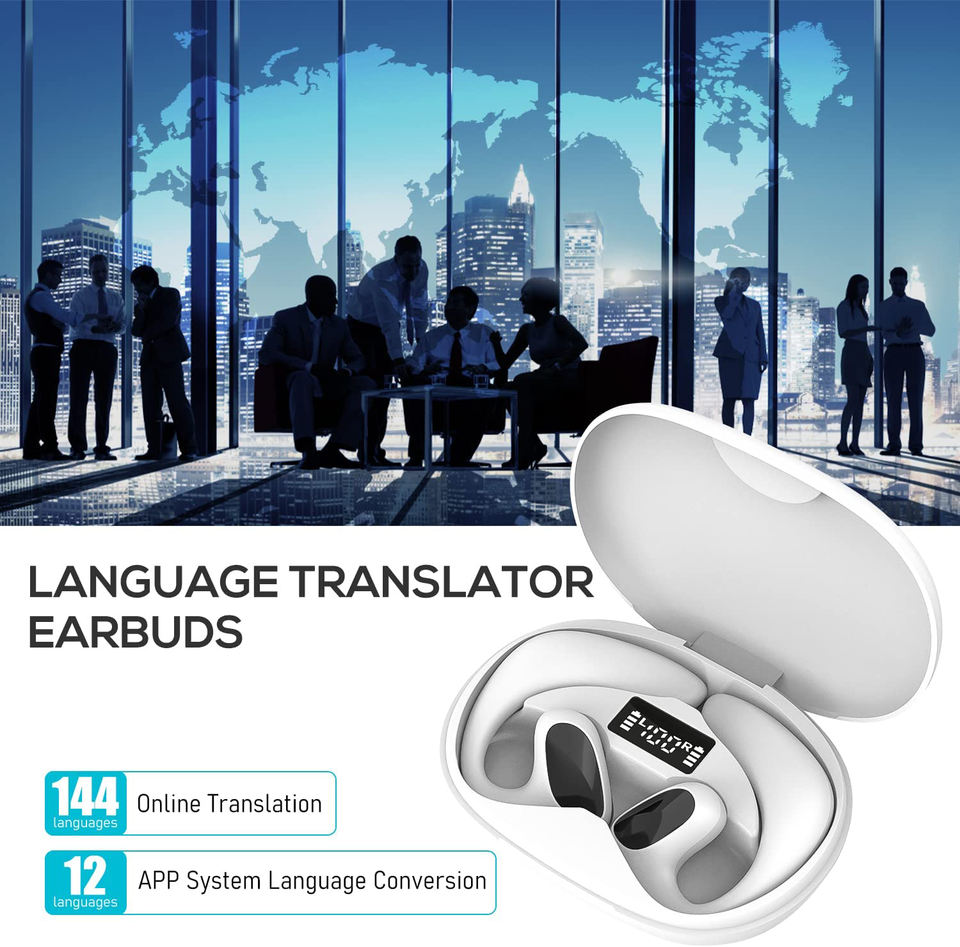 หูฟังยอดนิยม แปลภาษาได้ 140 ภาษา หูฟังไร้สายพร้อม BT5.3 ไฟ LED แสดงสถานะแบตเตอรี่ แบบกึ่งใส่ในหู สำหรับฟังเพลงและโทร