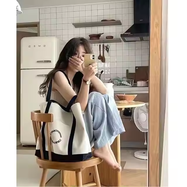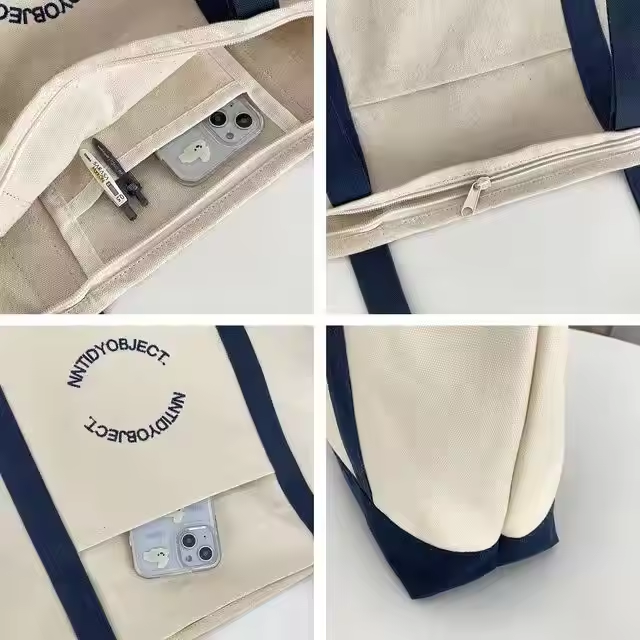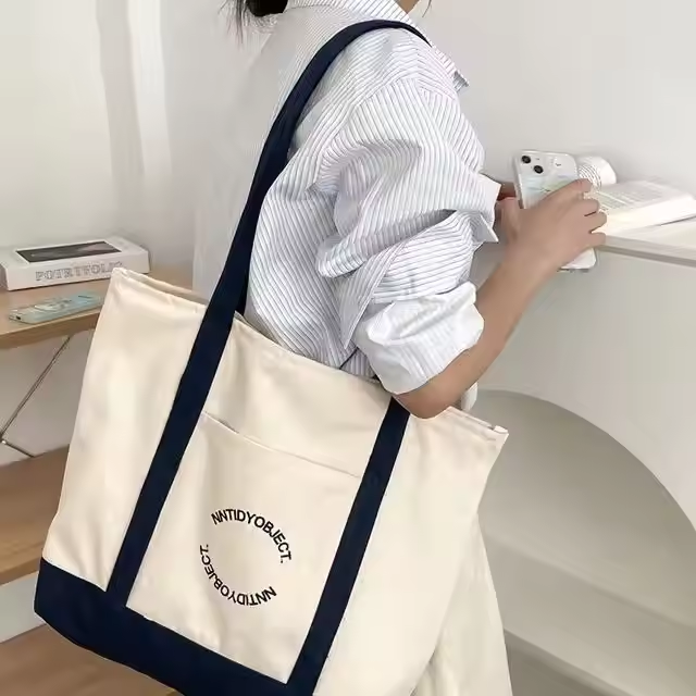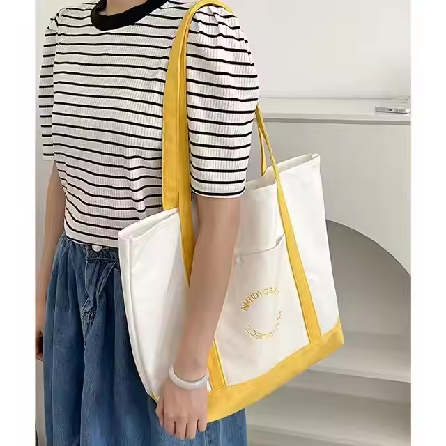 กระเป๋าโท้ทผ้าใบสะพายไหล่มีหูหิ้วหลากสีความจุขนาดใหญ่พิมพ์ลายและปักโลโก้ตามสั่งเป็นมิตรกับสิ่งแวดล้อมยอดนิยม