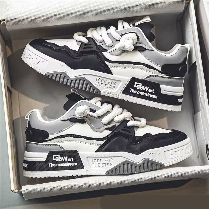 รองเท้าลำลองพื้นเรียบสไตล์สเก็ตบอร์ด ดีไซน์ทันสมัย ใส่สบาย เหมาะสำหรับเดินเล่น ถ่ายรูป ถ่ายวิดีโอ ออกกำลังกาย สำหรับผู้ชาย
