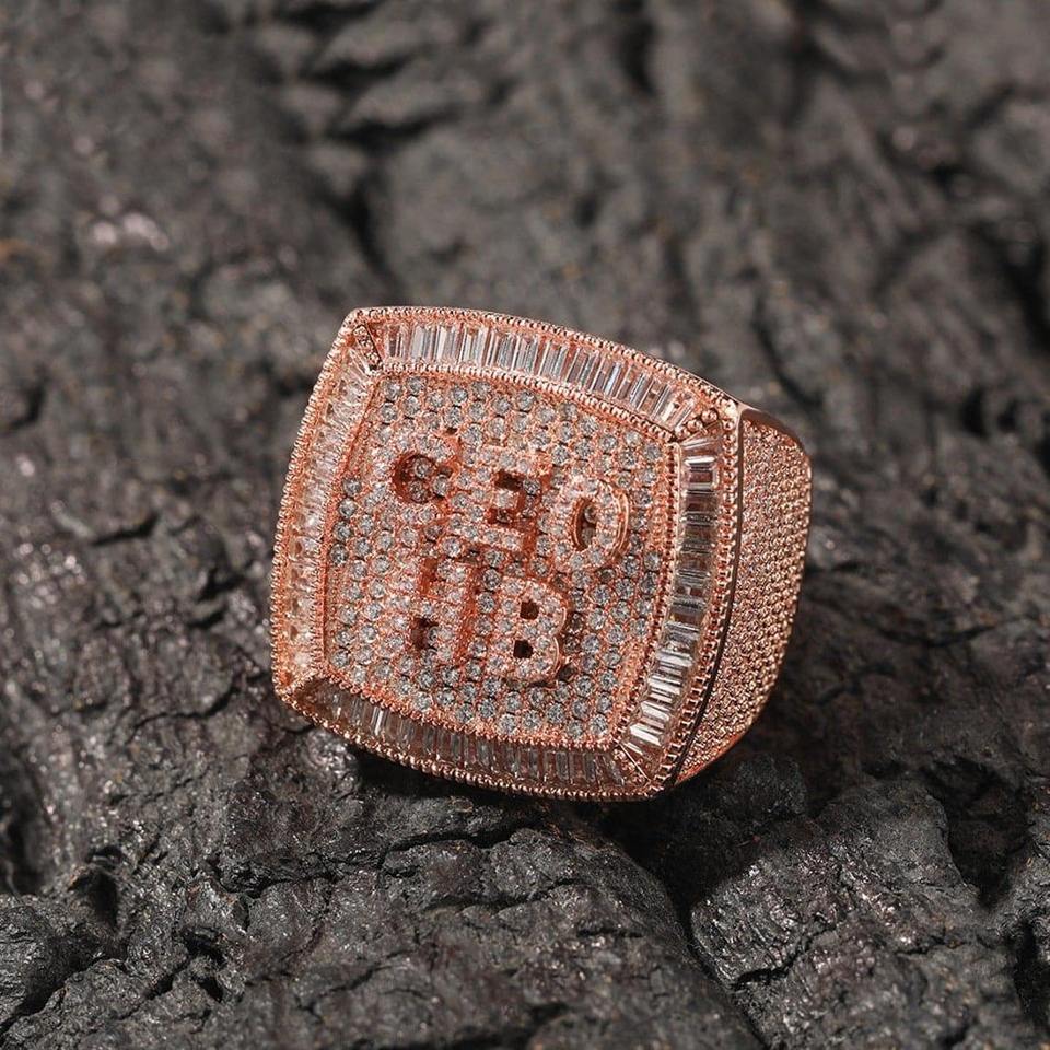 แหวนฮิปฮอปขนาดเล็กมีตัวอักษร925ชุบทองเพชรโมอิสได้รับการรับรอง GRA VVS Moissanite
