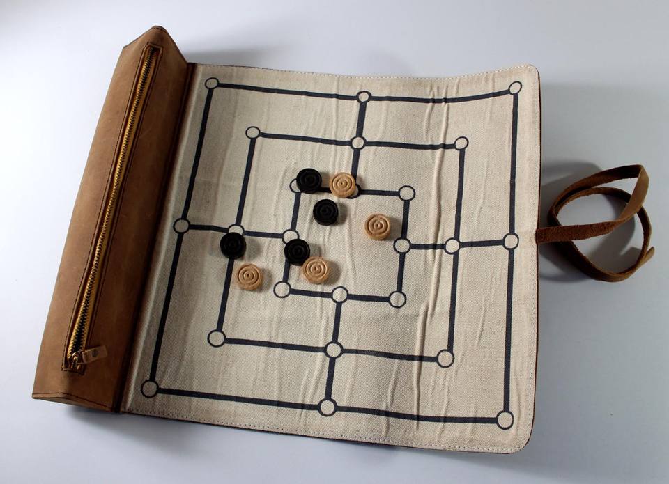เกมในร่มยอดนิยมของเยอรมันสำหรับ 2 คน ด้านซ้ายมีช่องใส่ของหนังแท้เย็บอย่างประณีต