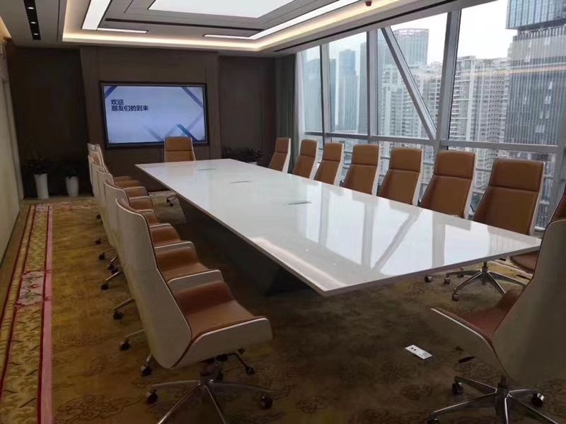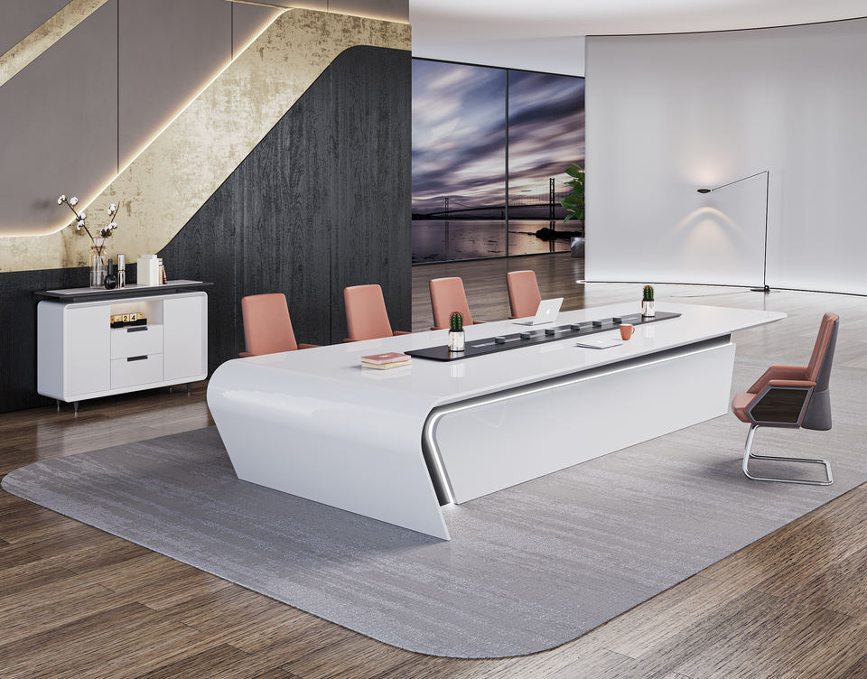 Popular High Glossy White Paint Large Conference Table 10,12,20 Persons with LED Light Luxury Latest Design Modern Meeting Table