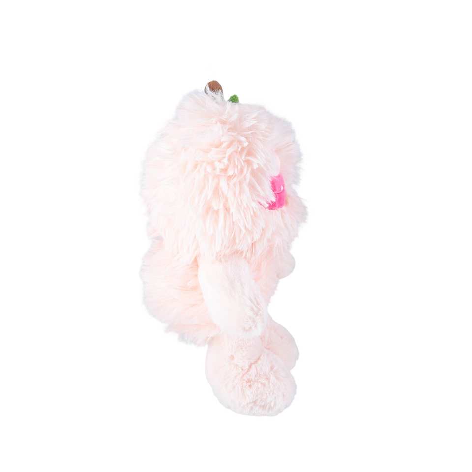 ตุ๊กตาผ้ากำมะหยี่ยาวรูปพีชสีชมพูมีความสุขน่ารักตุ๊กตาสัตว์ยอดนิยมของตกแต่งบ้านผ้าฝ้าย PP ซักของเล่นผักผลไม้