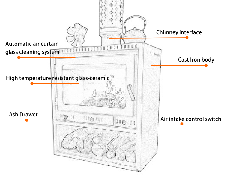 เตาซาวน่าเหล็กหล่อแบบตั้งพื้น ใช้ฟืน เป็นมิตรกับสิ่งแวดล้อม สำหรับห้องนั่งเล่นในวิลล่า ยอดนิยม ขายดี
