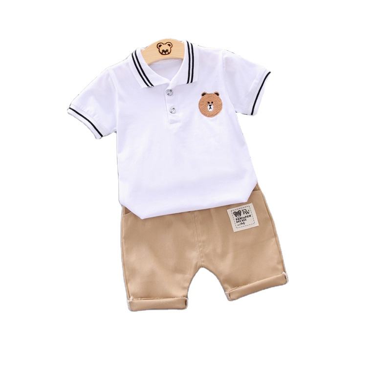 ชุดเสื้อผ้าเด็กยอดนิยมขายดี สไตล์ใหม่ เสื้อสเวตเชิ้ตเด็กผู้ชายและกางเกงขายาวสีกากี ชุด 2 ชิ้น
