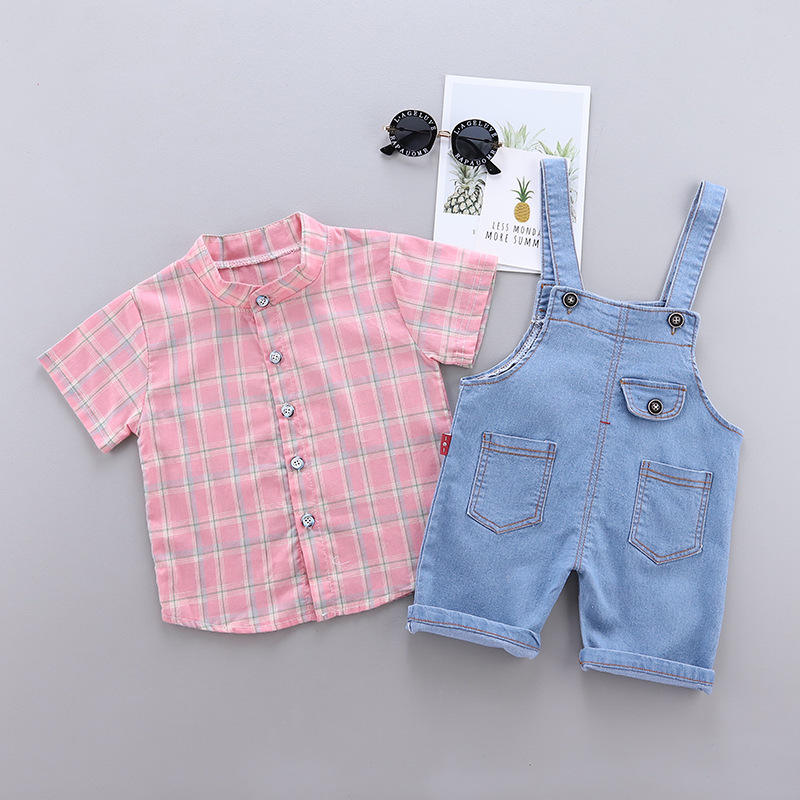 ชุดเสื้อผ้า เสื้อเชิ้ตลายสก็อตสำหรับเด็กผู้ชาย และชุดกางเกงยีนส์สุดฮิต