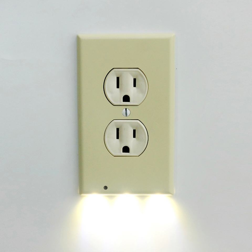 สินค้าขายดี ปลั๊กไฟติดผนังสีขาวมาตรฐานอเมริกัน พร้อมไฟกลางคืนแบบเปิด/ปิดอัจฉริยะ