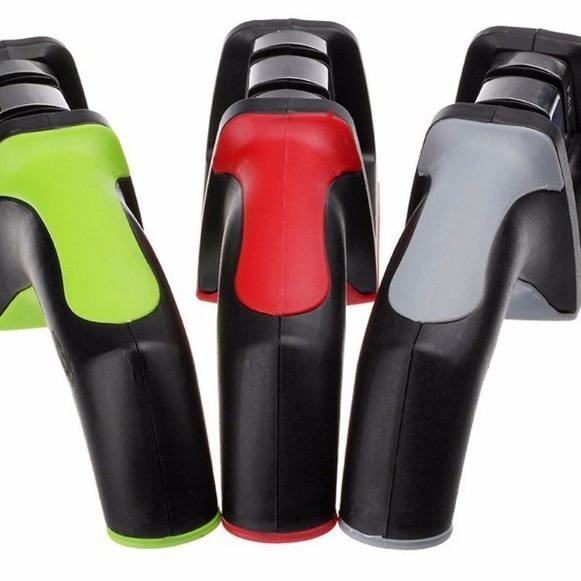 เครื่องลับมีดยอดนิยมพร้อมด้ามจับ เหล็กกล้าคาร์บอน แบบใช้มือ หลายขนาดเม็ดทราย หินลับสองร่อง สำหรับใช้ในครัวเรือน
