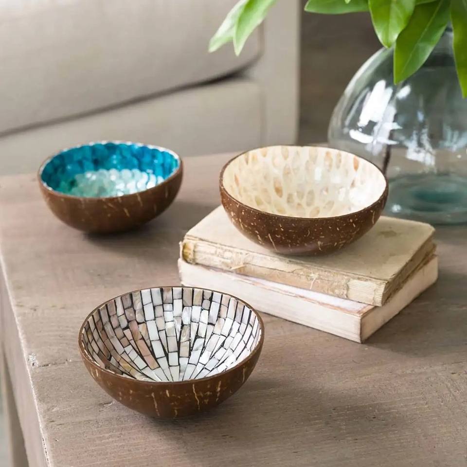 Popular Lined Coconut Accent Bowls With a Contrasting Inlayed Shell Interior Coconut Inlay Bowl