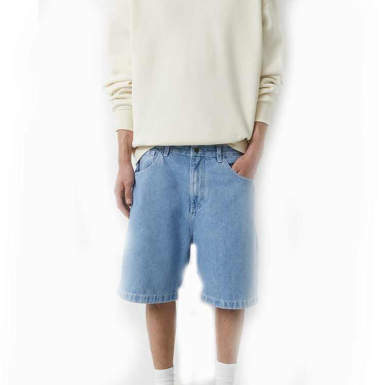 กางเกงยีนส์ขาสั้นผู้ชายยอดนิยม สไตล์วินเทจ ล้างสีแบบคลาสสิก ผ้าฝ้าย 100% ขายส่ง