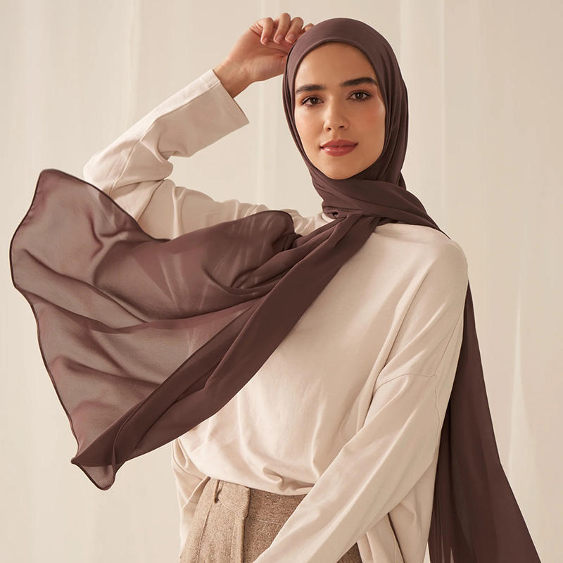 Popular Muslim Silky Skin-Friendly Chiffon Hijab 100% Polyester Custom Color Size Minimalist Wholesale Custom Printed