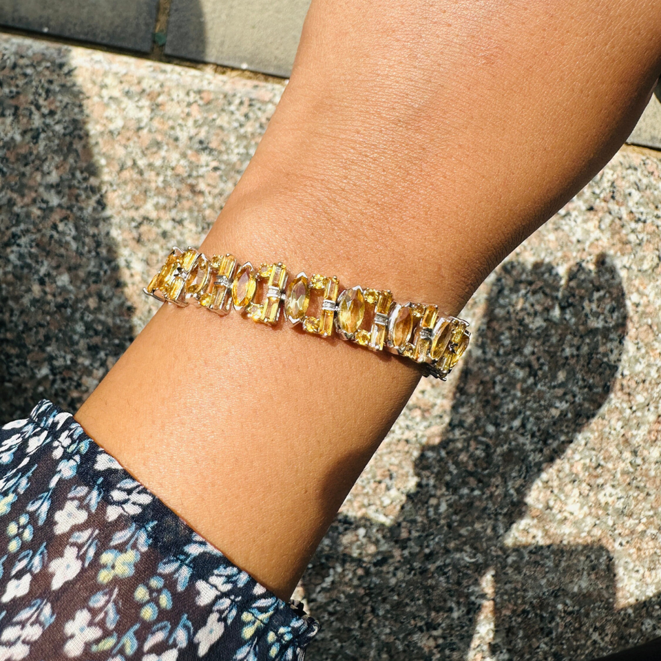 925คลาสสิกทำด้วยมือเงินแท้เครื่องประดับที่ดีสร้อยข้อมือ Citrine โรเดียมชุบสำหรับงานแต่งงานของขวัญ