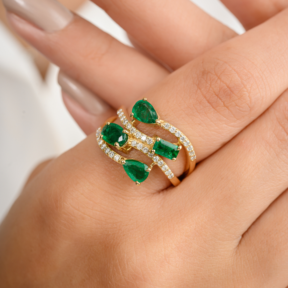แหวนทอง18K สำหรับเป็นของขวัญของขวัญดีไซน์ใหม่ยอดนิยมสำหรับงานวันเกิดหินสีมรกตและเพชรแข็ง