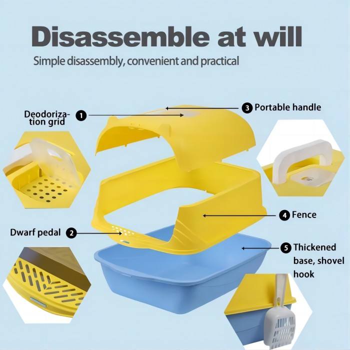 กล่องทรายแมวพลาสติกไม่มีกลิ่นสำหรับแมวแบบเปิดห้องส้วมขนาดใหญ่อุปกรณ์เสริมสำหรับแมว