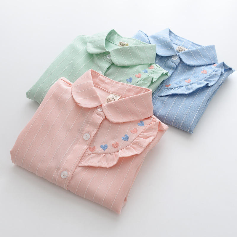 เสื้อเบลาส์ระบายอากาศปักลายมีระบายดีไซน์หรูหราเป็นมิตรกับสิ่งแวดล้อมสำหรับเด็กผู้หญิง