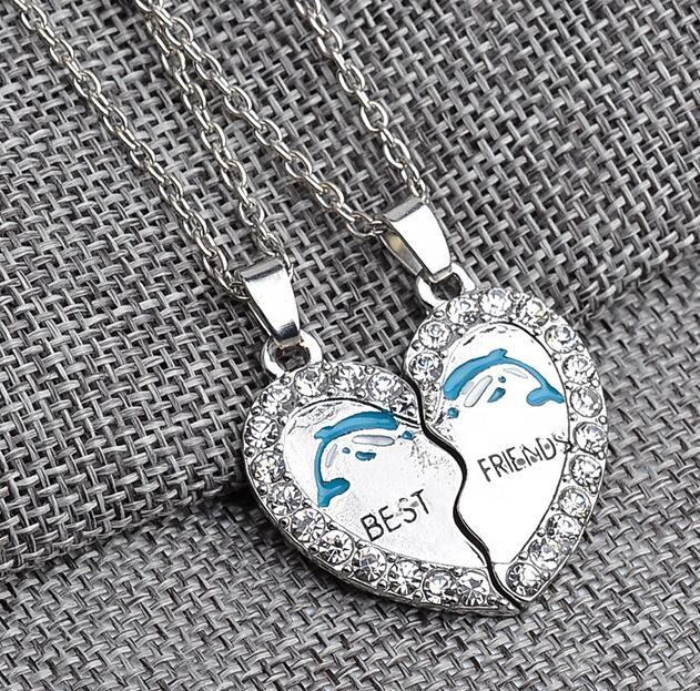 Popular Personalized Rhinestone Heart Necklace Pendant Charm Graduation Friendship Necklace Gift